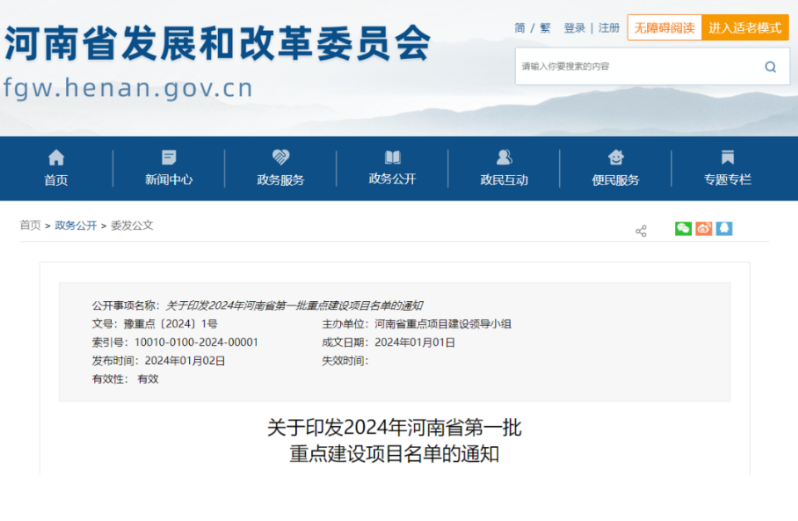 近日,河南省發(fā)改委公布了2024年第一批重點(diǎn)建設(shè)項(xiàng)目名單,據(jù)介紹,該批項(xiàng)目作為各行業(yè)領(lǐng)域重中之重,聚焦高質(zhì)量發(fā)展首要任務(wù),是大力發(fā)展新質(zhì)生產(chǎn)力,加快傳統(tǒng)產(chǎn)業(yè)延鏈升鏈、新興產(chǎn)業(yè)補(bǔ)鏈強(qiáng)鏈、未來(lái)產(chǎn)業(yè)建鏈成鏈的關(guān)鍵舉措,是積極穩(wěn)妥推進(jìn)碳達(dá)峰碳中和、實(shí)現(xiàn)可持續(xù)發(fā)展的有力抓手,是完善基礎(chǔ)設(shè)施網(wǎng)絡(luò)、增強(qiáng)人民幸福感獲得感的主要載體。